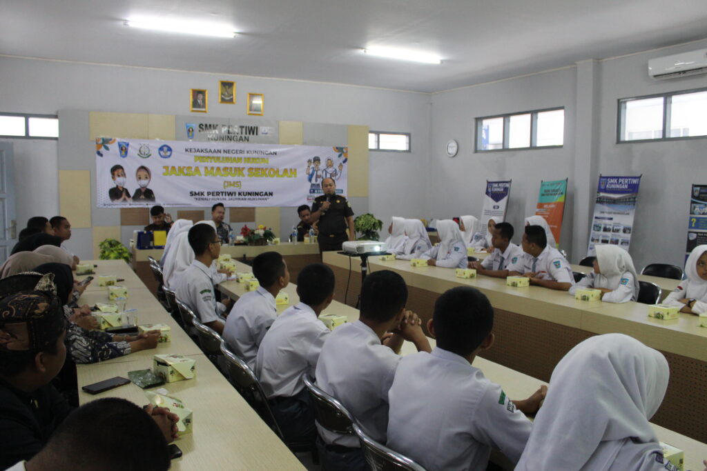 Pada hari Kamis tanggal 06 Februari 2025 sekira pukul 10.00 WIB s.d pukul 11.00 WIB telah dilaksanakan Kegiatan Program Jaksa Masuk Sekolah kepada para Siswa-siswi SMK PERTIWI KUNINGAN dengan tema penyuluhan hukum “Kenali Hukum, Jauhkan Hukuman” dan materi yang di sampaikan yaitu mengenai sosial media dan cyberbuliying. Materi tersebut di sampaikan oleh Plt Krpala Kejaksaan Negeri Kuningan Sunarto, S.Pd. S.H. M.H.