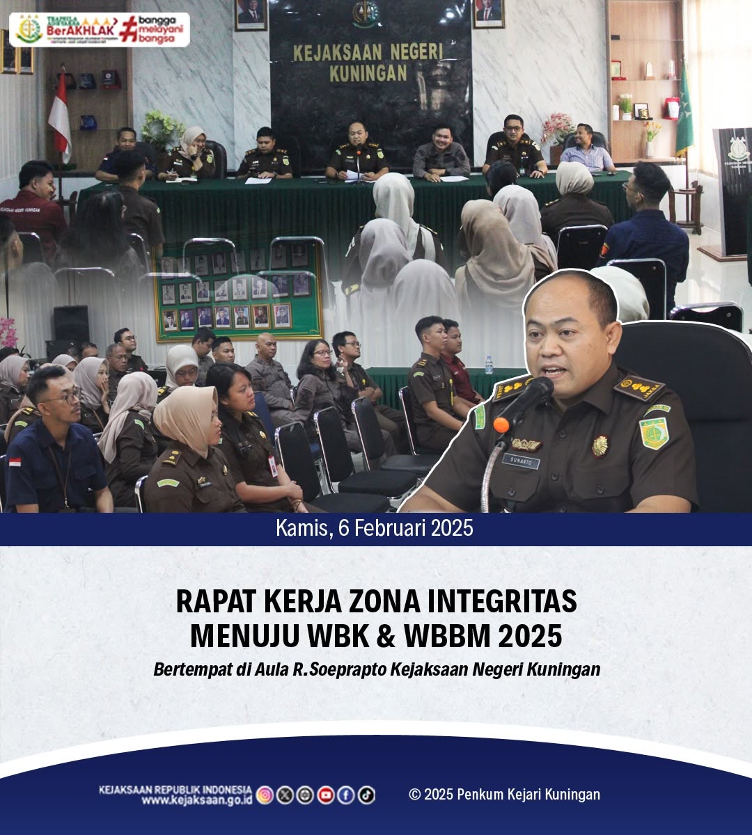 Kamis, 6 Februari 2025Rapat Kerja Zona Integritas Menuju WBK & WBBM 2025, dengan dihadiri seluruh Pegawai Kejaksaan Negeri Kuningan yang…
